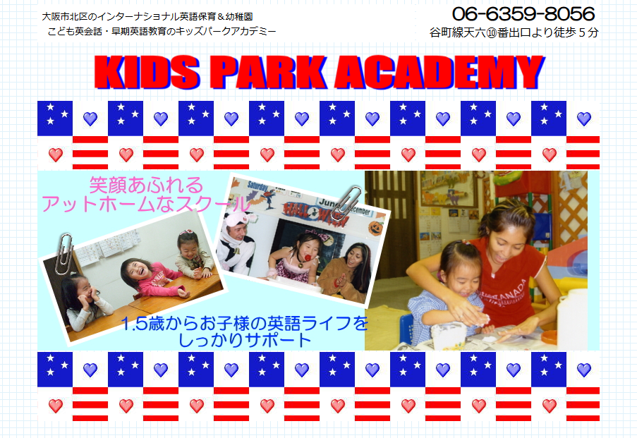 大阪市北区浮田に教室を構えるキッズパークアカデミーを紹介し、同校の子ども(3歳~)英会話の特徴や利用者による口コミ、主なコースと費用目安、主な教室の所在地などの情報をとりまとめてご紹介しています。