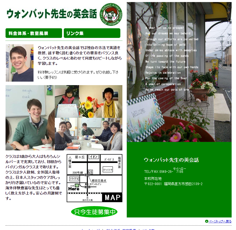 引用元:ウォンバット先生の英会話教室公式HP(http://wombat.fc2web.com/)